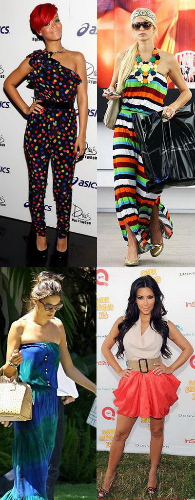 Fashionistele de la Hollywood s-au intrecut in aceasta vara in tinute care mai de care mai pline de viata. Turcoazul, coraiul, galbenul si portocaliul au fost un must pentru hainele cu imprimeuri florale, buline si dungi.